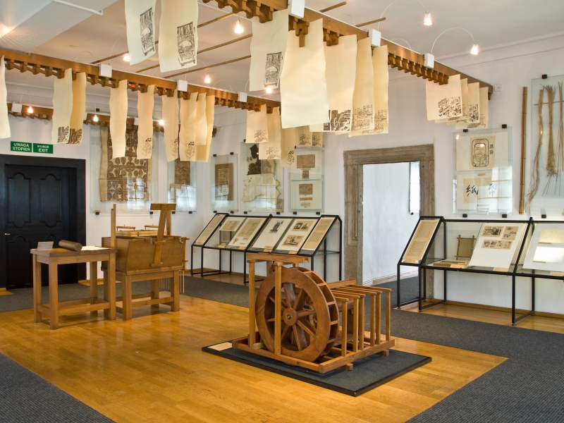 Zwiedzanie muzeum podzielone jest na 2 trasy: "Z papierem przez dwa tysiąclecia" i "Sztuka i pieniądze" Tematem przewodnim wystaw stałych mieszczących się w salach muzealnych jest historia papieru i sposobu jego wytwarzania w Polsce i na świecie na przestrzeni lat. Kolekcje muzealne obejmują między innymi: