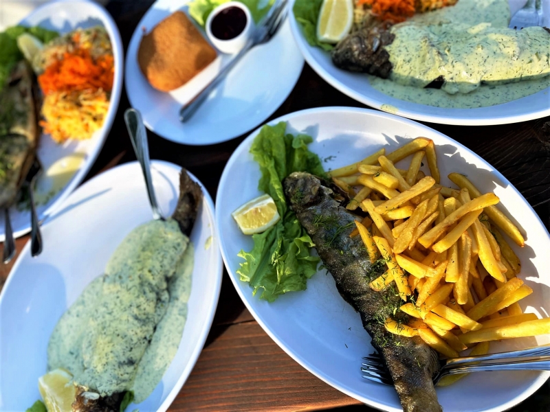 Dania rybne (pstrąg) ceny od 25 do 30 zł.
