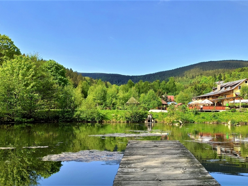 Smażalnia pstrągów "Nad Stawami" w Kletnie to wyjątkowa przestrzeń, gdzie miłośnicy dobrej kuchni mogą skosztować świeżych, lokalnych produktów. Jest to super miejsce, gdzie pstrągi są hodowane w pięknie zagospodarowanych stawach, co gwarantuje ich świeżość i wysoką jakość. Można tu również samodzielnie złowić wspaniałego pstrąga! Smażalnia oferuje niemal 10 dań, w których pstrąg jest przygotowany na różnorodne sposoby, takie jak pstrąg smażony, pieczony czy grillowany, w ziołach, sosie czosnkowo-koperkowym lub chrzanowym, a także serwuje inne potrawy w towarzystwie lokalnych dodatków, takich jak świeże warzywa i owoce. Dzięki różnorodnym recepturom każdy gość może znaleźć coś dla siebie. Piwosze będą mieli tu okazję zasmakować w lokalnych browarach, a nawet w tych pochodzących od czeskich piwowarów.